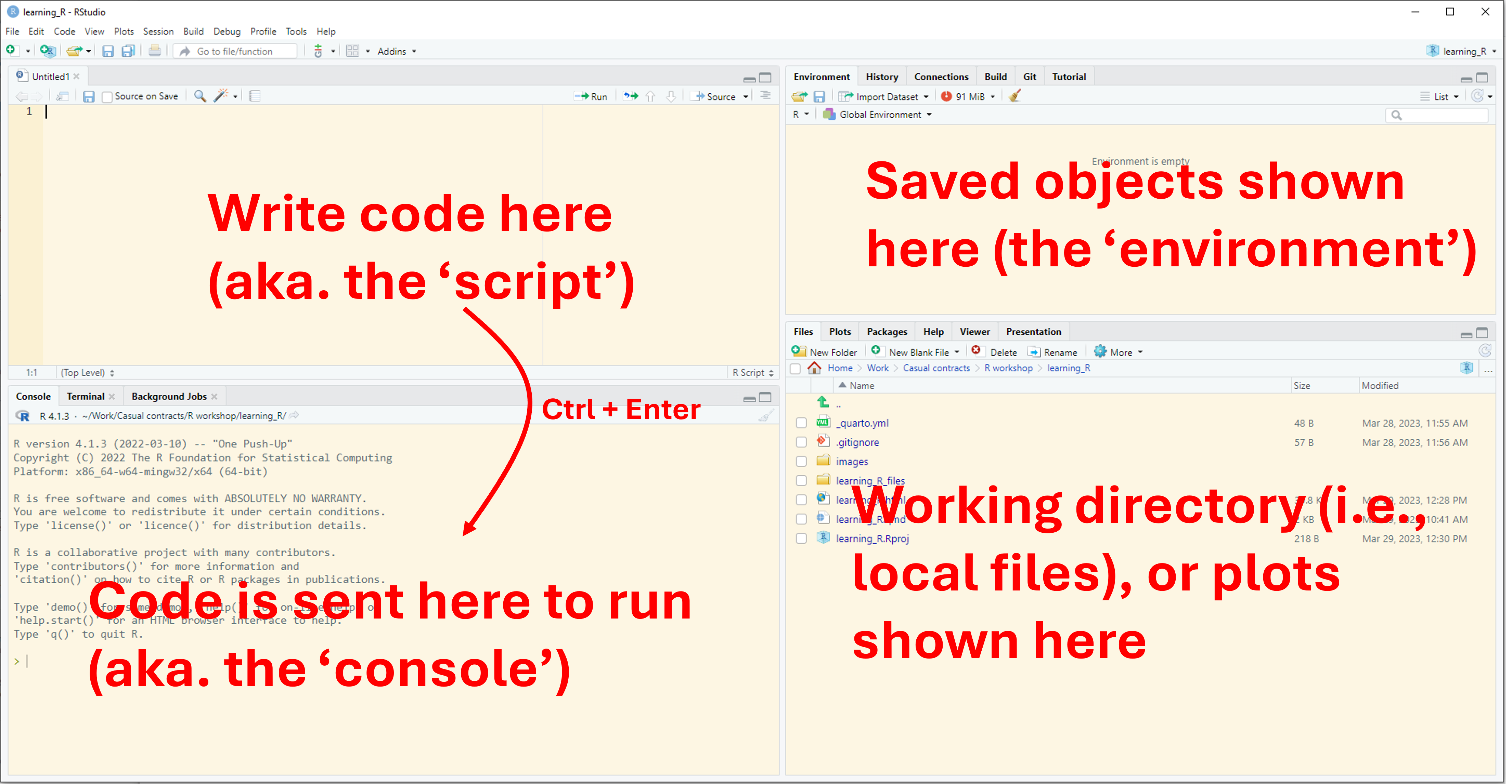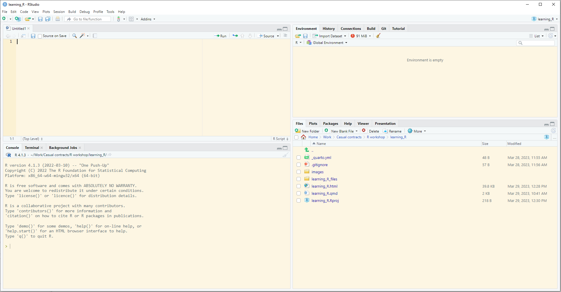 Task: Start a new R project - Open RStudio - New Project - New Directory > New Project - Browse location for location of all R projects - Give a good title for the analysis (e.g. “phd_chapter_1”) - avoid spaces and capitals